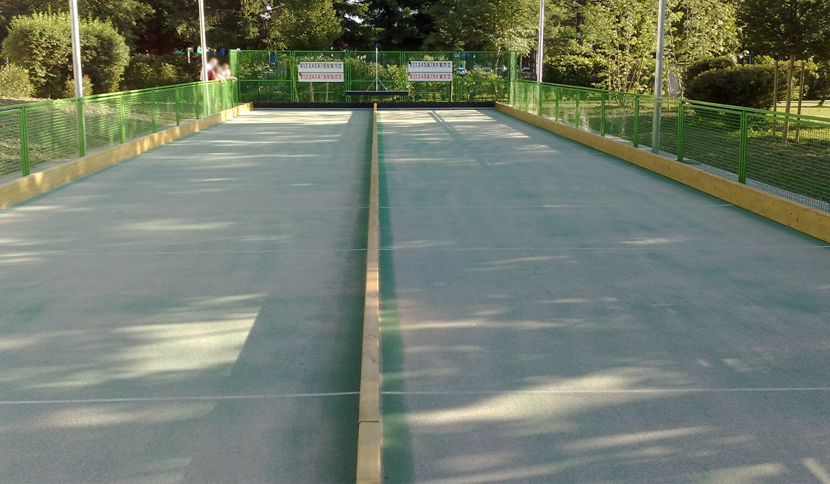 Costruzione di n.2 campi su un area cortiliva, dopo aver sbancato il terreno, riempito con ghiaione, gettato una caldana in cemento, posato uno strato di asfalto, colato in opera il manto sintetico, montato le sponde laterali in legno lamellare, i basculanti in gomma vulcanizzata, la recinzione e tutti gli accessori per poter giocare